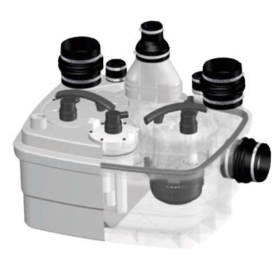 - Когда необходимо разделение задач, то есть фекальные отходы от санузлов должны удаляются отдельно, а грязная вода с кухни – отдельно. Для откачивания и удаления отходов первого типа используется оборудование с измельчителем, а для отходов второго типа необходимо дополнительно приобрести и установить жироуловитель. Наличие жироуловителя сокращает уровень нагрузки насоса, что увеличивает длительность срока эксплуатации оборудования. По этой причине специалисты настоятельно рекомендуют приобретать жироуловитель для систем удаления и откачки кухонных стоков. Подобная децентрализация задач повышает совокупную работоспособность системы.