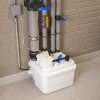 Установка данного типа дает возможность организовать эффективное принудительное отведение, в ходе которого откачиваются большие объемы (резервуарная емкость вмещает 32 литра). Можно одновременно подключить до пяти сантехнических приборов, возможно подключение всего дома, то есть параллельное откачивание от кухни и нескольких санузлов может выполняться одной станцией. Диаметр пяти впусков отличается: 1 имеет вход размером 40/40 мм, остальные 40/50/100/110 мм.