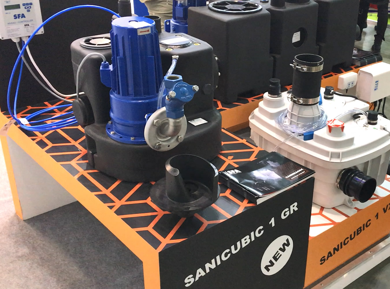 На выставке Акватерм 2020 в Москве SFA представила 4 модели совершенно новых канализационных насосных станций - это однодвигательные и двухдвигательные КНС серий Sanicubic GR (расшифровывается как Grinder - измельчитель) и Sanicubic SC (расшифровывается как турбина Single Channel). Канализационные станции с подъемом стоков на высоту до 39 метров, а также с перекачиванием до 160 м3 стоков в час.