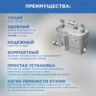 Тихий и надежный насос для переноса кухни. Гарантия 3 года. Одна из самых известных моделей SFA.
