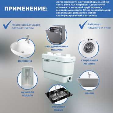Канализационная установка SFA Sanivite используется для эффективного откачивания грязной воды от различного санитарно-технического оборудования. Она может применяться для следующей сантехники: