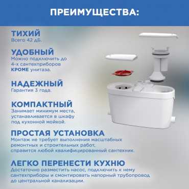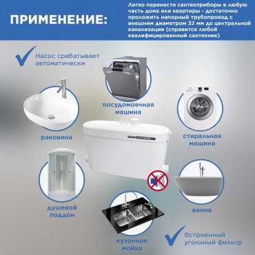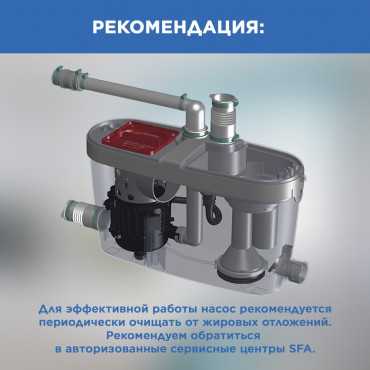 Зачастую есть потребность в переносе канализации от кухни и ванной комнаты в квартире, частном доме или на даче. Специалисты SFA разработали насос с уникальными техническими особенностями, позволяющий качественно откачивать горячие и жирные канализационные стоки, имеющий встроенный угольный фильтр.