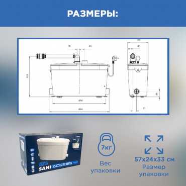 Канализационный насос топовой серии Saniaccess. Встроенный угольный фильтр, надежный двигатель, люки быстрого доступа.