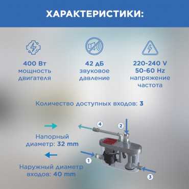 | Рекомендуемый диаметр напорной линии | 32 мм |