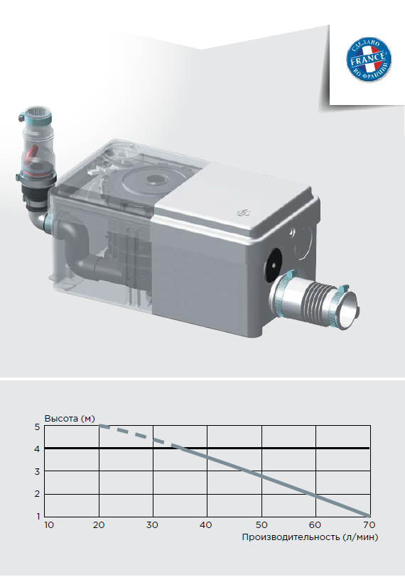Дренажный насос имеет гарантию 3 года, работает тихо и надежно. К SFA SANIDOUCHE можно подключить до 4-х холодильных приборов.