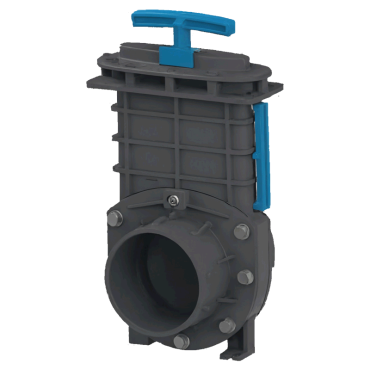 Установка шиберных задвижек позволяет облегчить работы по техническому обслуживанию канализационной станции. Рекомендуется устанавливать шиберные задвижки на всех подводящих трубопроводах. Для установки задвижки на трубу DN 100 необходимо установить переходные муфты. Корпус задвижки изготовлен из ПВХ и ТПЭ, рабочий шток - нержавеющая сталь.