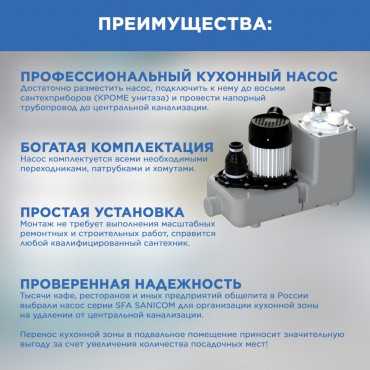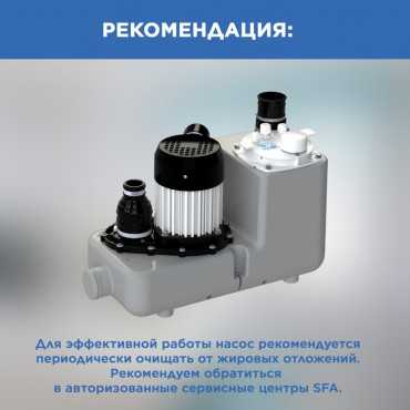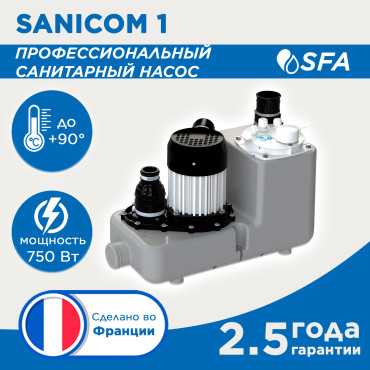 SFA SANICOM 1 - надежный санитарный насос без системы измельчения для профессионального использования в больших кухонных зонах, например в кафе, ресторанах, столовых, интересным видится его использование также в салонах красоты и прачечных. К данному насосу ПОДКЛЮЧЕНИЕ УНИТАЗА НЕ ДОПУСКАЕТСЯ!