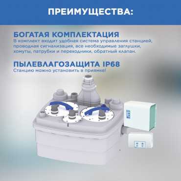 Откачивание по трубе 50 мм. Для частных и коммерческих помещений. 2 двигателя. Измельчение ProX K2.