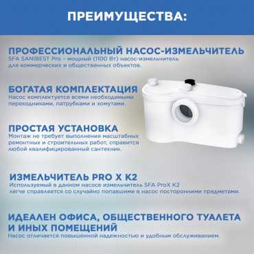 Sanibest Pro отличается высокой производительностью и надежностью. Насос с измельчителем идеален для общественных помещений - предприятий общепита, офисов, общественных туалетов.