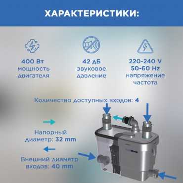 Унитаз к данному насосу не подключается, так как он не оснащен измельчителем. Со стоками из кухни и...