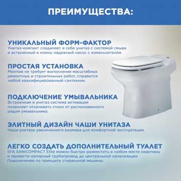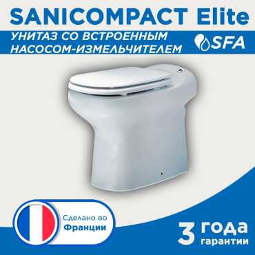 Sanicompact Elite — унитаз со встроенным насосом-измельчителем, который используется для установки в любых помещениях.